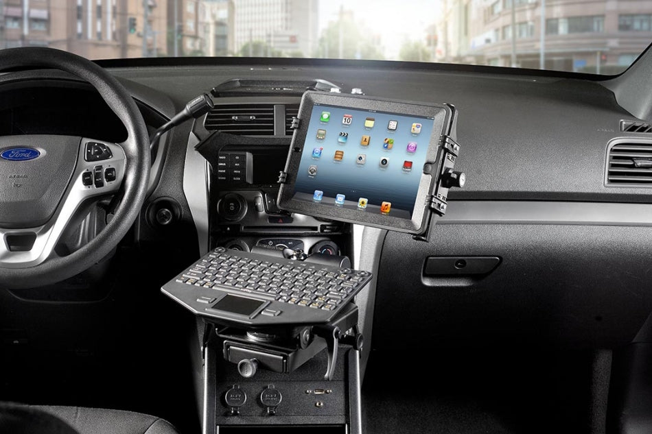 - Anchors directly to the top of your Ford Police Interceptor Utility console box for stability.