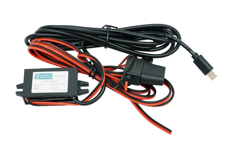 • 72" input cable with bare wire lead; 72" power output cable with USB-C male connector
